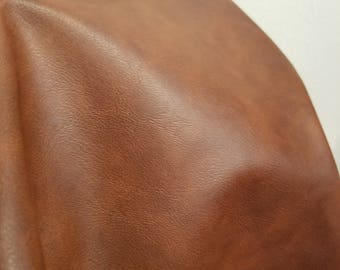 Compound weathered polyurethane faux leather tan upholstery fabric.