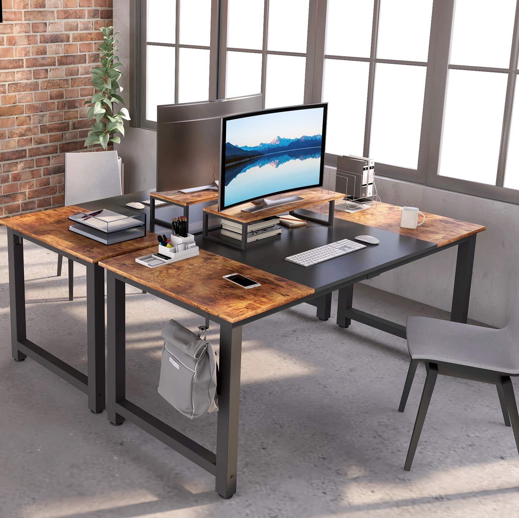 .desk, 55 inch study writing table with storage shelves, modern simple style pc desk with splice board, black and espresso a modern design this modern computer desk comes with 2 shelves that can place your favorite books, decorations, or notes on the shelves for easy access, which fits well in.