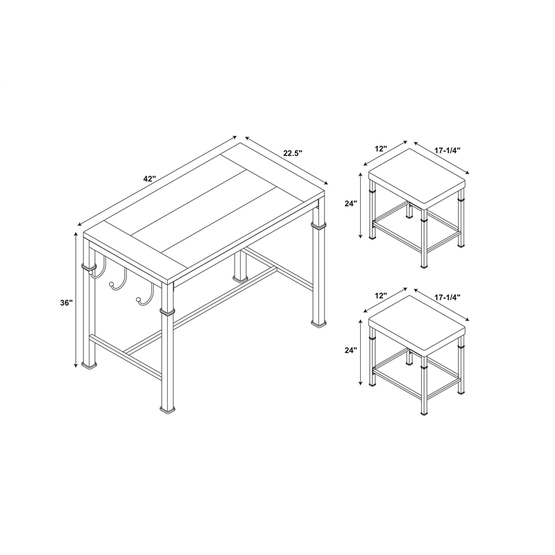 Linon tables and chairs offer dining solutions that fit every home. Bar & pub tables with storage options. The chairs have a french back and are available in 24 and 30 seat heights.