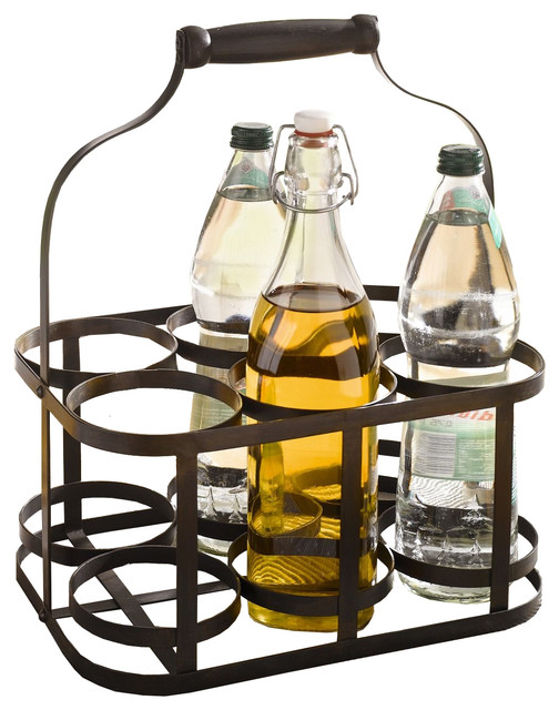 6 Bottle Metal Rack Basket Caddy Holder With Wood Handle Industrial Wine Racks By Pier Surplus from st.hzcdn.com