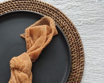 Handcrafted of 100% rattan, our artesia natural charger is woven in a pattern known as hapao. Telford round rattan charger (set of 2). The simple round mat hosts all kinds of dinnerware, the perfect finishing touch for the modern organic table. Handcrafted of 100% rattan, the artesia serving collection is woven in a pattern known as hapao.